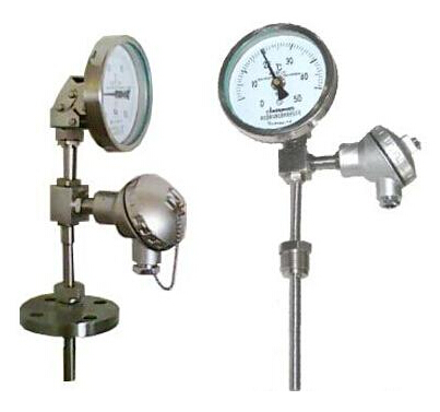 采用雙金屬溫度計與熱電偶/熱電阻一體的方式,既滿足現(xiàn)場測溫需求,亦滿足遠距離傳輸需求,可以直接測量各種生產(chǎn)過程中的-80-+500℃范圍內(nèi)液體、蒸氣和氣體介質(zhì)以及固體表面測溫。