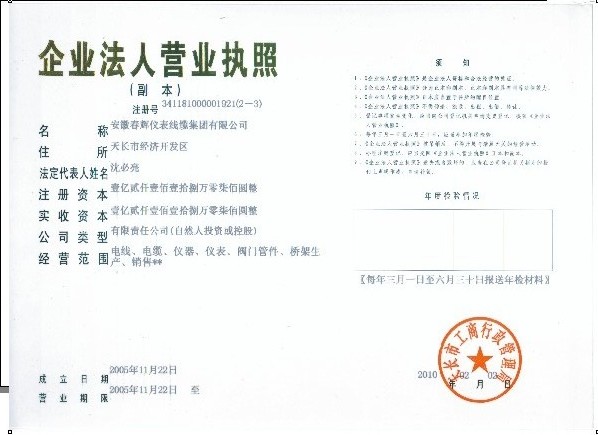 熱烈祝賀安徽春輝儀表線纜集團有限公司注冊資金達億元