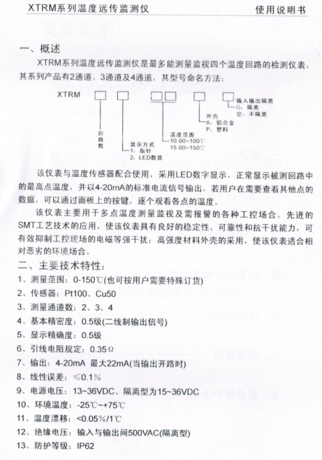 XTRM系列溫度遠(yuǎn)傳監(jiān)測(cè)儀新產(chǎn)品說明書: