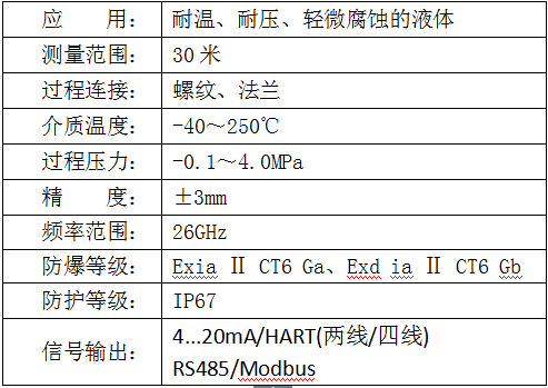 HHRD系列傳感器是26G高頻雷達式物位測量儀表,輸出4-20mA模擬信號,測量****距離可達70米。 天線被進一步優(yōu)化處理,新型的快速的微處理器可以進行更高速率的信號分析處理,使得儀表可以用于:反應釜或固體料倉非常復雜的測量條件。
