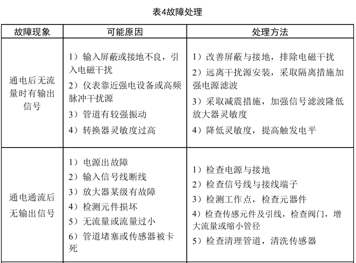 在通電不通流時(shí)轉(zhuǎn)換器應(yīng)無(wú)輸出,瞬時(shí)流量指示為零,累積流量無(wú)變化,否則首先 檢查是否因信號(hào)線屏蔽或接地不良,或管道震動(dòng)強(qiáng)烈而引入干擾信號(hào)。如確認(rèn)不是上述 原因時(shí),可調(diào)整轉(zhuǎn)換器內(nèi)電位器,降低放大器增益或提高整形電路觸發(fā)電平,直至輸出 為零。
