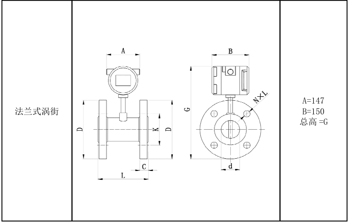 三、渦街傳感器結(jié)構(gòu)及尺寸