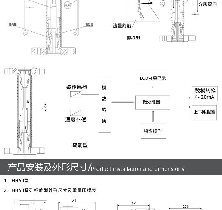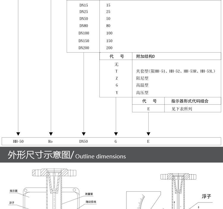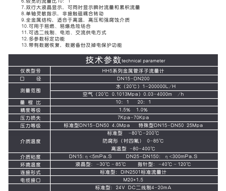 HH5系類金屬管浮子流量計(jì)是工業(yè)自動(dòng)化過程控制中常用的一種面積流量測量儀表。它具有體積小,檢測范圍大,使用方便等特點(diǎn)。它可用來測量液體、氣體以及蒸汽的流量,特別適宜低流速小流量的介質(zhì)流量測量。 流量計(jì)主要有三大部分組成:1.測量管體;2.錐形浮子;