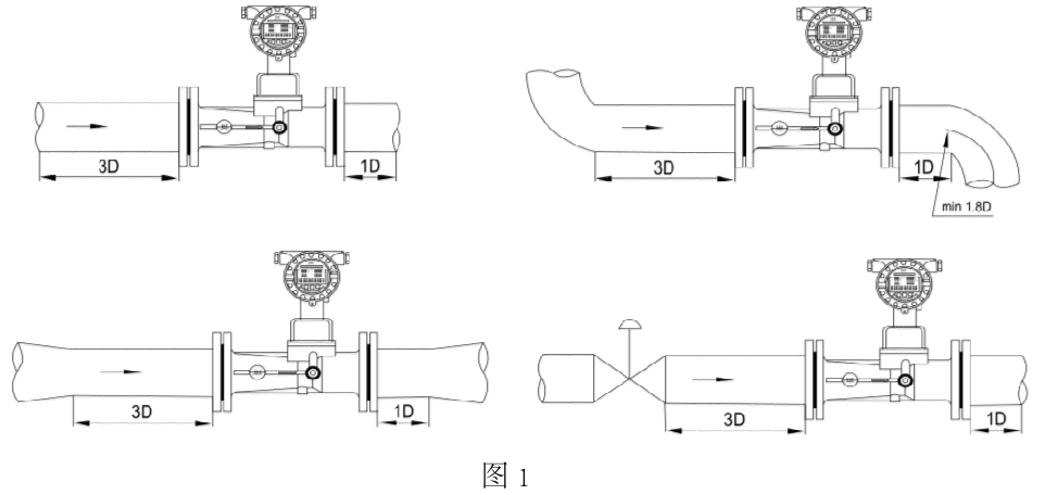 3)上下游直管段要求見圖1
