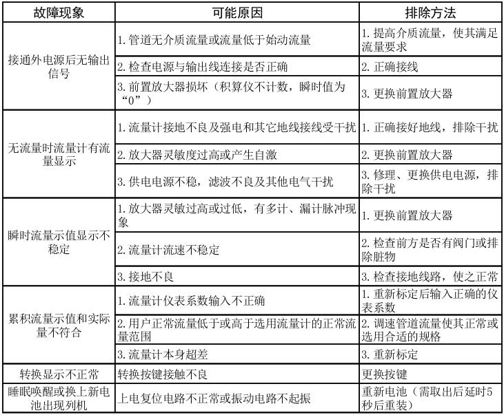 1.在運行過程中若發(fā)生流量計顯示值與實際流量示值不符合時,應(yīng)首先檢查用戶 的管道系統(tǒng)是否符合流量計的安裝要求。