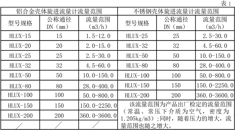 3、流量計規(guī)格、基本參數(shù)和性能指標(biāo)(見表1)
