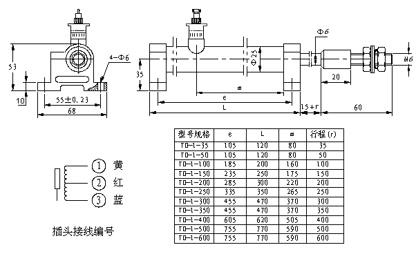 TD-1 次閥位傳感器:0 ~ 20、35、50、100、150、200、250、300、350、400、500、600